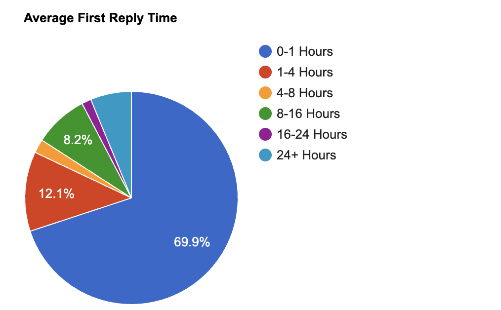 Algunos datos que te compartiremos, te ayudarán a entender mejor el por qué de los diferentes rangos de tiempo de respuesta. Como ejemplo, si bien nuestro soporte técnico está disponible todo el tiempo, hay otros departamentos que tienen sus días y horarios de atención un poco más acotados, lo cual hace bajar el promedio.