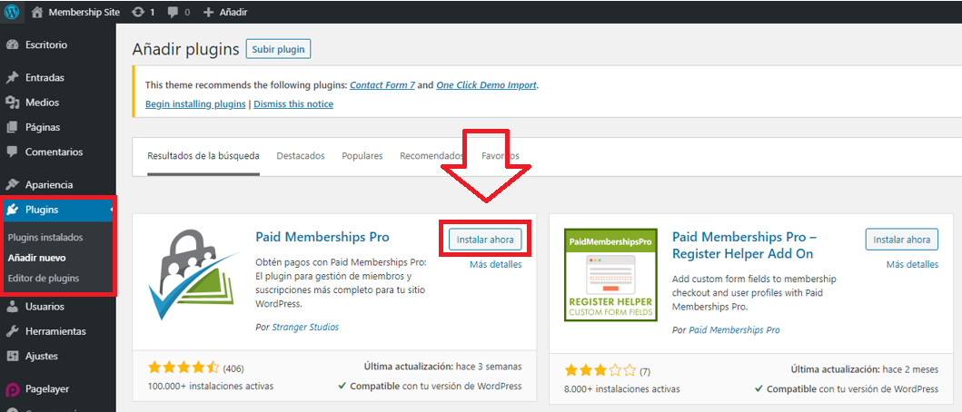 Instala el plugin Paid Memberships Pro