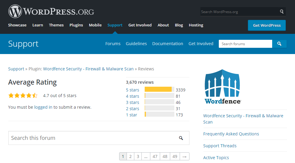 Wordfence es de lo mejor que podrás encontrar como protección estándar de tu WordPress, y cada día miles de usuarios lo instalan en su sitio web en su versión sin costo. Tan sólo mira las revisiones que tiene en el repositorio oficial de plugins de WordPress. Con sólo leer un poco, te darán ganas de instalarlo.